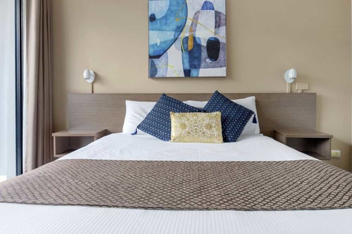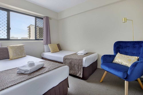 市の中心に位置し、ショッピングエリアやビジネス街に近い便利な立地。客室は大きめの窓が明るい雰囲気を醸し出している。ブリスベーン国際空港から約9km。