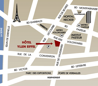 地下鉄ヴォロンテール駅の向かいに位置するホテル。パリの街並みに溶け込んだヨーロピアンスタイルの建物。館内はモダンでエレガントな雰囲気。タイプによって異なる客室はどれもエレガントで大人の空間が広がる。オルリー空港から約16km。シャルル・ド・ゴール国際空港から約40km。