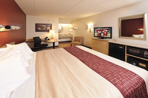 ダウンタウンから約11km、インターステート10号線近くに位置するホテル。その名の通り赤い屋根が印象的な外観。やや狭い印象のロビーはシンプル。客室はさほど広くはないがブルーを基調としたシックなインテリアで落ち着ける。高速道路の出口に近く車での利用に便利。アリゾナ大学まで約12km。ツーソン国際空港から約6.4km。
