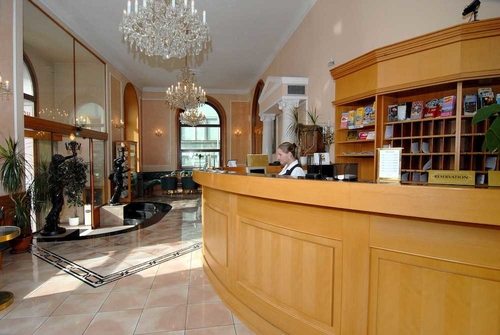 地下鉄フロレンツ駅から徒歩約5分のところにある1890年創業の歴史あるホテル。淡いピンク色の壁に白い窓枠が美しい外観は付近でもひときわ目を引く。シャンデリアが輝くロビーはエレガントな家具が置かれ優雅な雰囲気。客室は落ち着いたピンク系でまとめられ、照明が多く明るい。ルズィニェ国際空港から約15km。