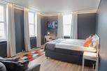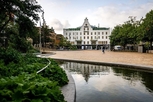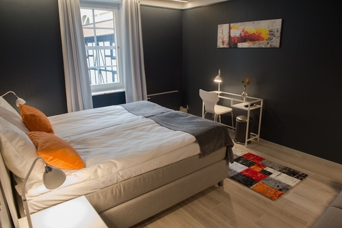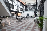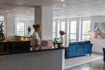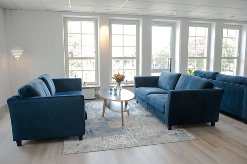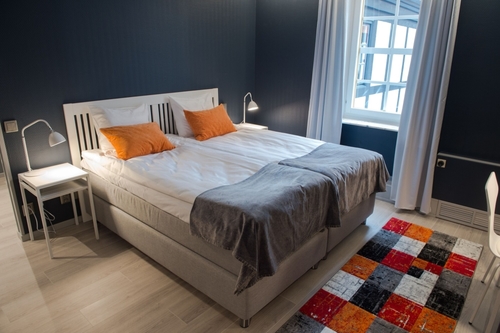 エスロブの中心広場に面して建つホテル。白いクラシックスタイルの建物で、中央の三角部屋と入口につながる広い階段が目を引く。ロビーの奥に開放的な吹き抜けのレストランがあり、その空間を囲むように客室が配されている。落ち着いた色合いの室内はやさしい印象で、バスルームも広く使いやすい。多くの部屋にバルコニーがある。メインランプがないので夜は少し暗く感じる。買物、食事に絶好のロケーション。デンマークのコペンハーゲン国際空港から約70km。