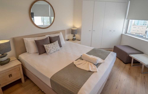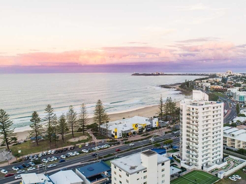 アレクサンドラ・ヘッドランドのビーチフロントに位置するホテル。白亜の外観。ブルーを基調としたロビーは海をイメージさせるさわやかな空間。客室は広めで明るく機能的なインテリア。バルコニーから美しいビーチが望める。キッズスペースや娯楽室、バーベキューエリアなど付帯施設も充実。パトロール・ビーチやサーフクラブが目の前という好立地にある。サンシャイン・コースト空港から約13km。