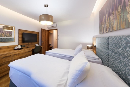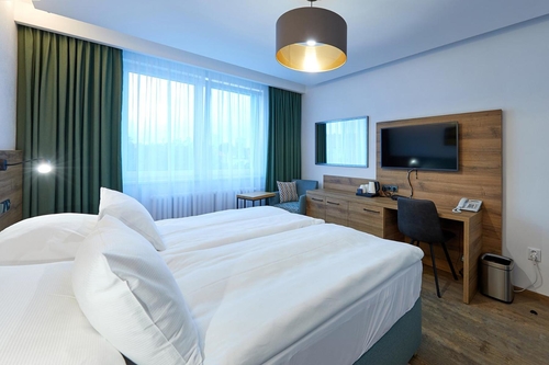旧市街の中心部から西へ徒歩約10分、「フローラ・オロモウツ」と呼ばれる草花の展示会が催される公園の向かいに建つホテル。淡いグレーのシンプルなビルディングタイプの建物。客室の造りや内装はタイプによって異なり、それぞれモダンなインテリアで明るい雰囲気にまとめられている。バスルームはほとんどの部屋がシャワーオンリー。トラム1号線または4号線のフローラ駅から約200m。ブルノ空港から約80km。