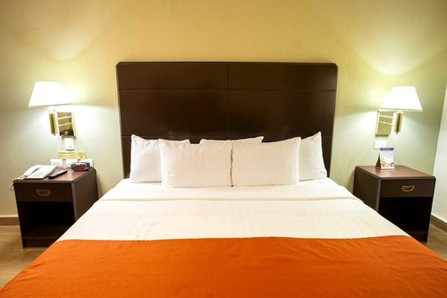 モンテレイ市内中心部、地下鉄1号線のクアウテモック駅より1ブロックのところにあるホテル。一部ガラス張りになった建物は中央に掲げられたロゴ看板が目印。花柄のベッドファブリックをあしらった客室はシックで落ち着いた雰囲気がただよっている。マクロプラザまで約1km。コンベンションセンターへは約5km。モンテレイ・マリアーノ・エスコベード国際空港から約25km。