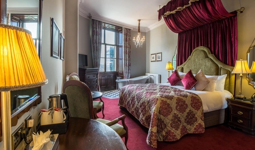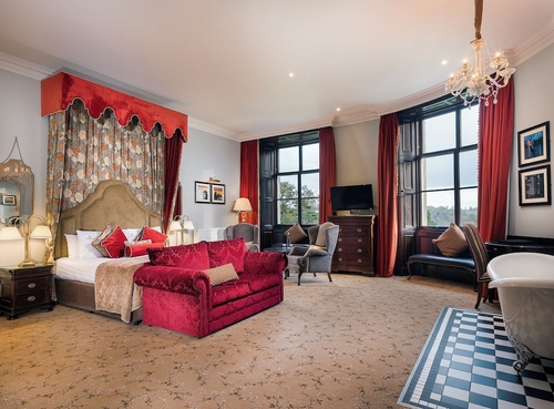 スライゴ郊外、コルーニーに位置する古城ホテル。緑豊かな広い敷地内にクラシカルな雰囲気がマッチしている。客室もゆとりのある空間。共有スペースも雰囲気があり、過去へタイムスリップしたかのよう。スライゴ市内から約13Km。