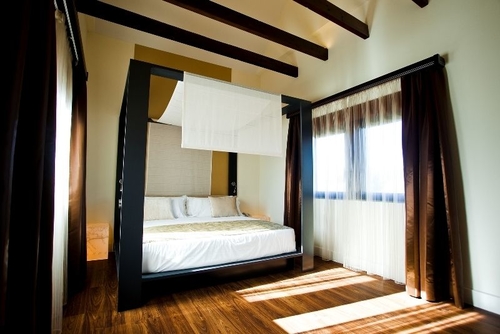 グラナダの南約20kmの郊外、シエラネバダ山脈を望む小さな町「ヴィラメーナ」にあるホテル。ブドウ畑に囲まれたなかにたたずむ白とレンガ色を組み合わせた建物。間接照明が落ち着いた雰囲気をかもし出す客室は家具を効果的に配し、上品にまとめられている。ワインセラーやイベントホールなどの付帯施設も完備。グラナダ空港から約44km。