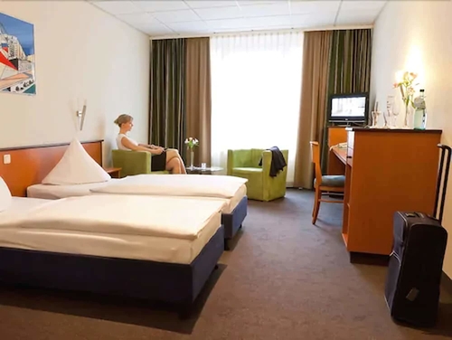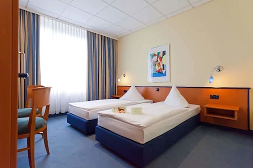 ケムニッツより北西へ13Kmほどのブルクシュテット市内南部エリア、中央駅より約1.4kmのところに位置するホテル。レンガ調の建物はアーチ型の窓が整然と並んでいる。客室はシックな色合いでまとめられたオーソドックスなインテリア。館内には23室の会議室も用意されるなどビジネス客にも便利な造りになっている。ドレスデン空港から約70km。ライプツィヒ空港からは約72km。