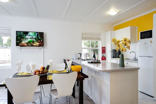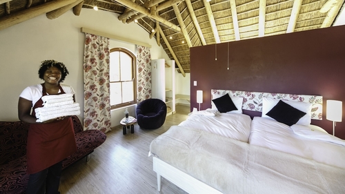 ロバートソン市内中心部に位置するホテル。グレーの屋根を配した白い低層の建物。客室は天井の梁がむき出しになったナチュラルスタイル。ケープタウン国際空港から約155km。