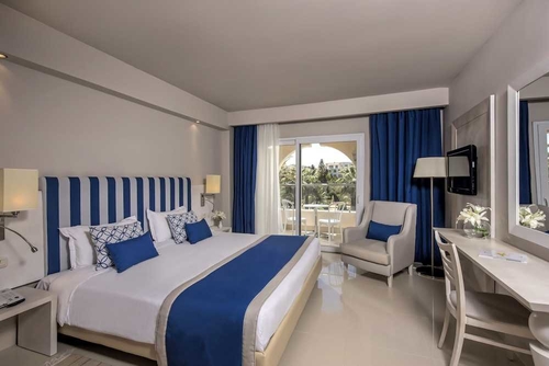 スース市内中心部より北西へ約11kmの海岸近くに位置するホテル。窓が整然と並ぶ低層の建物がプールを囲うようにたたずんでいる。タイプによりファブリックカラーの異なる客室はそれぞれ眺望がよくゆったりとしたリゾートステイを過ごせる。モナスティルまで約40km。モナスティル・ハビーブ・ブルギーバ国際空港から約30km。