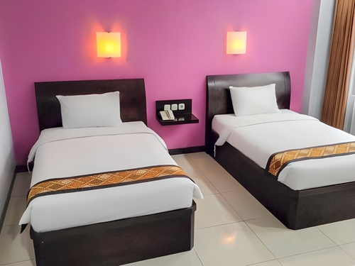 テガルの中央駅より北西へ約1.3kmのところに位置するホテル。現代的な建物はエントランス上部に赤い看板が設けられている。客室は間接照明がシックなムードを演出。ペングン空港から約75km。