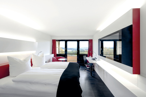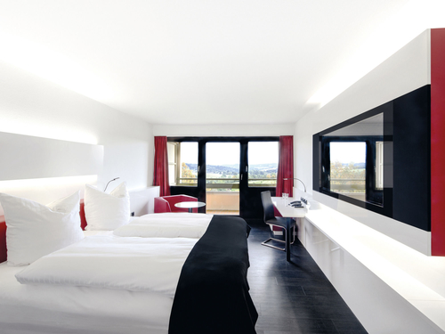ボンから南東へ約37km、ビントハーゲンの中心部より南西へ約3.2kmのはずれに位置するホテル。客室はレッドカラーをアクセントにスタイリッシュにまとめられている。ケルン・ボン空港から約43km。