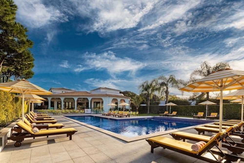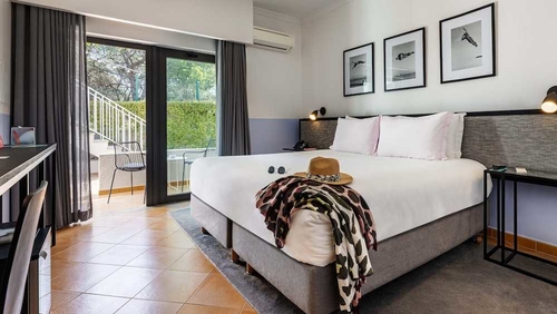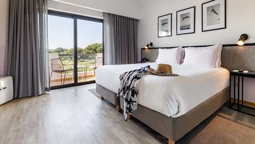 ファロの北西約16km、アルマンシルの中心部より南へ約3.6kmのところに位置するホテル。淡いオレンジ色の瓦屋根を配した建物。客室は質感のよい家具をあしらったモダンスタイル。内外ともに板張りになったシャレーもある。ファロ空港から約16km。