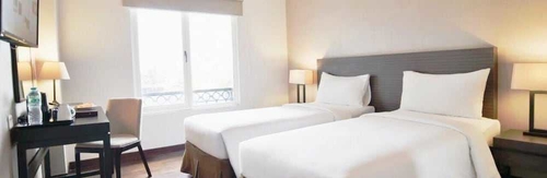 全部で 182 室ある冷房完備の客室にはLED テレビが備わっており、ゆったりおくつろぎいただけます。WiFi (無料)をお使いいただけるほか、ケーブルの番組をご覧いただけます。シャワーのある専用バスルームには、バスアメニティ (無料)、スリッパが備わっています。セーフティボックス、デスクをご利用いただけ、ハウスキーピング サービスは、毎日行われます。このホテルはジャカルタのビジネス地区にあり、セントラル パーク モール、タムリン シティ ショッピング モールまで車で 15 分で行けます。 このホテルは、ホワイトサンドビーチPIK 2まで 11.2 km、パサール バルまで 12.6 km の場所にあります。