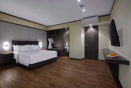 全部で 210 ある冷房完備の客室にはミニバー、スマートテレビなどが備わっており、ゆっくりおくつろぎいただけます。WiFi (無料)をお使いいただけるほか、ケーブルの番組をご覧いただけます。シャワーのある専用バスルームには、レインフォールシャワー、バスアメニティ (無料)が備わっています。セーフティボックス、デスクをご利用いただけ、ハウスキーピング サービスは、1 度の滞在につき 1 回行われます。このホテルはバタム島の中心部、ナゴヤ ヒル モールやグランドバタムモールまで車で 5 分以内の場所にあります。 このホテルは、バタム センター フェリー ターミナルまで 8 km、ハーバー ベイ フェリー ターミナルまで 3.2 km の場所にあります。