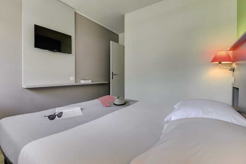 全部で 347 室ある冷房完備の客室には薄型テレビが備わっており、ゆったりおくつろぎいただけます。各客室には、専用のバルコニーがあります。WiFi (無料)をお使いいただけるほか、デジタルの番組をご覧いただけます。シャワー付きのバスルームが備わっています。このホテルはイエールの海沿いにあり、ジアン半島まで歩いてすぐ、Plage de la Baumeまで歩いて 6 分で行けます。 このファミリー向けホリデーパークは、ツーロン ビーチまで 29.7 km、Plage des Porquerollesまで 1 km です。