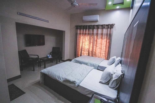 全部で 15 室ある客室で、おくつろぎください。客室ではWiFi (無料)をご利用いただけます。アイロン / アイロン台をご利用いただけ、ハウスキーピング サービスは、リクエストにより行われます。カラチのPECHSにあるこのホテルからは、Flag Staff House、パキスタン ホッケー クラブまで車で 5 分です。 このホテルは、マノラ ビーチまで 30.4 km、DHA カラチ本社まで 2.7 km の場所にあります。