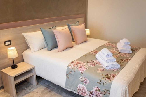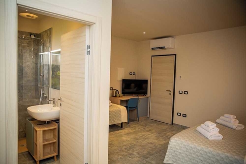 全部で 9 室ある客室で、おくつろぎください。ベッドに、羽毛の掛け布団、高級寝具が付いています。客室ではWiFi (無料)をご利用いただけます。シャワーのある専用バスルームには、ビデ、ヘアドライヤーが備わっています。このホテルはラツィーゼの田園地域にあります。ムービーランドやアクア パラダイス (テーマパーク)までは車で 5 分とかからずに行くことができます。 このアグリツーリズムは、ガルダランド シー ライフ水族館まで 4 km、ガルダランドまで 4.8 km の場所に位置しています。