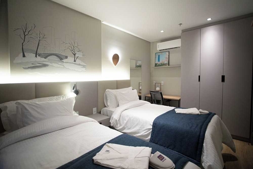 全 88 室ある冷房完備の客室には、冷蔵庫、電子レンジなどが備わった簡易キッチンがあり、ゆったりおくつろぎいただけます。ピロートップのベッドに、高級寝具が付いています。50 インチのスマートテレビでデジタルをご覧いただけるほか、WiFi (無料)などもご利用いただけます。デスク、独立した応接スペースをご利用いただけ、ハウスキーピング サービスは、毎日行われます。イタペマのメイア プレイーアにあるこのホテルに宿泊すれば、イタペマ ビーチとペレケのビーチまで車で 15 分以内で行くことができます。 このホテルは、ボンビニャス ビーチまで 12.8 km、マリスカウ ビーチまで 14.9 km の場所にあります。