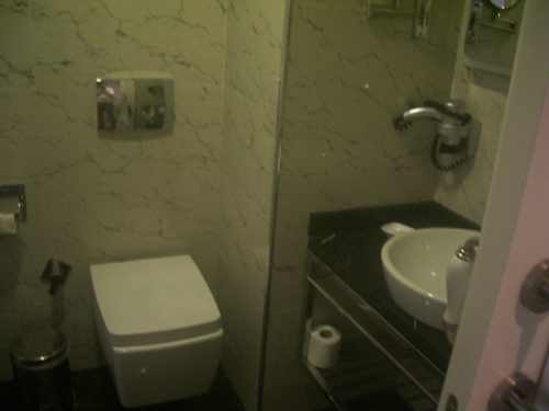 ヒルトン系列なのでバスタブ完備、予定通りの部屋を準備していただけました。天井からのシャワーがありますが、うっかり閉め忘れるとずぶ濡れになるほか、閉めても始めは冷水が少し漏れてくるので、ピクトグラムの表示をよく読んでから開栓が必要です。