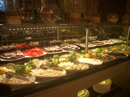 とても力を入れているようで、大変満足でした。テラス席を選んだところ、窓越しにイスタンブール猫が遊びに来るので癒されます。ビュッフェ形式で、野菜類は旬のトマトに葉物やハーブも含んで充実、トルコで美味しいパンは種類豊富なだけでなく、ピデ(トルコ風ピザ)の焼き担当が目の前で焼いてくれます。ギリシャ風ヨーグルトにトルコ名産ハチミツを加え、フルーツやお菓子類も摘まめて、心に残る内容でした。