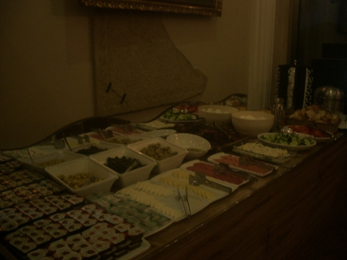 ◎です。宴会場を机の配置を変えた会場ですが、テーブル間も広くてとても快適でした。チーズやオリーブ、パンや野菜も何種類もあり、手作りと思われる色んなジャムが並んで、連泊しても空きが来ないと思います。