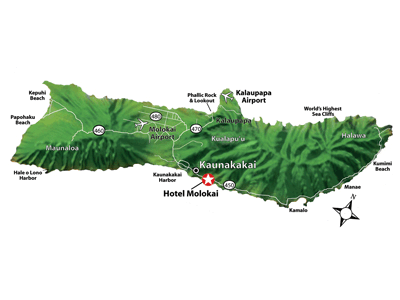 カウナカカイ地区にある、1966年開業のモロカイ島で最も古い老舗ホテル。典型的なポリネシアンスタイルの外観にも趣がある。ゆったりとした客室はモダンな中にもハワイらしさを感じさせるインテリア。地元の人にも長く愛されており、ここで挙式を挙げる人も多いという。モロカイ空港から約14km。