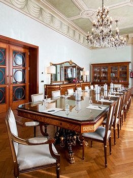 マジョレー湖の中西部、バベーノ中心部に位置するホテル。緑豊かな庭園に囲まれた薄いピンク色の瀟洒な建物。大理石仕様のロビーは天井の豪華なステンドグラスが高級感をより一層高めている。客室の造りや内装はそれぞれ異なるが、いずれも優雅でエレガントなインテリア。マルペンサ空港から約55km。