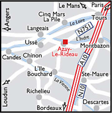アゼール・リドー駅より約1kmのところに位置するホテル。一部蔦(つた)がはう建物で赤い日よけが目印。籐製の椅子やテーブルが並ぶロビーは採光がよい。客室は華やかさはないものの白いレースカーテンをあしらいやわらかな空間を演出している。アゼール・リドー城まで約2km。トゥール水族館へは約30km。トゥール・バル・ド・ロワール空港から約35km。
