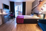 中央駅からコンサートホールの反対側に向かって徒歩約8分の場所に建つホテル。窓の形がユニークな薄茶色のモダンな建物。客室はパステルカラーのソファや軽快な柄のファブリックでセンス良くまとめられ明るい雰囲気。イタリア料理のレストランは地元でも人気が高い。エンゲルホルム空港から約35km。