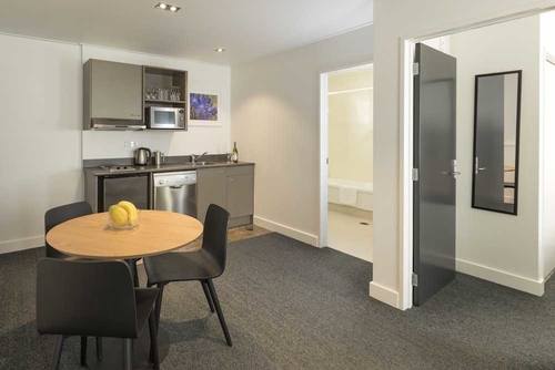 市内中心部、キャドバリーワールドより約50mのところに位置するアパートメントタイプのホテル。ナチュラルウッドのアクセントが目を引く白亜の建物。こぢんまりとしたロビーは明るく落ち着いた雰囲気。客室はベージュやブラウンのファブリックをあしらい、ゆったりとくつろげる。市内セントラルビジネスディストリクトまで約250m。セントポールズ大聖堂へは約850m。ダニーデン国際空港から約33km。