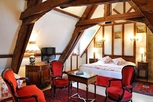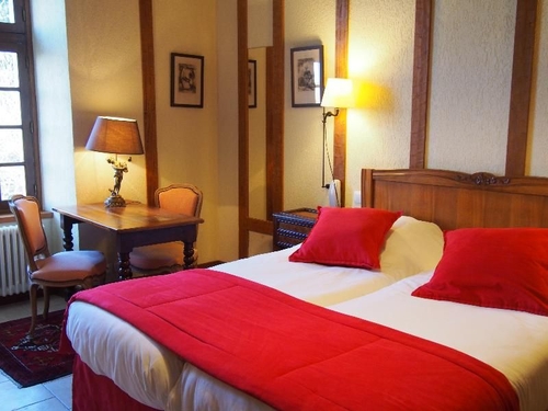 バイユー市内中心部より北東へ約16kmのクレポンに位置するホテル。三角屋根を配した石造りの建物。客室はむき出しになった天井の梁や木製家具があたたかみのある雰囲気をかもし出している。カーン・カルピケ空港から約22km。