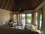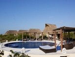 メリダの西約101km、セレストゥン市内中心部より北へ約10kmのはずれに位置するホテル。緑豊な敷地内に藁葺き屋根の建物が複数点在している。木製家具を配した客室は採光がよく南国リゾートらしい開放感がただよっている。メリダ国際空港から約92km。